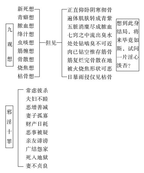 【原文】佛告阿難,若有四眾,著慚愧衣,服慚愧藥,欲求解脫者,當學此法,如飲甘露。想前子臟,乃至女根及男子身內(nèi)諸蟲張口豎耳、瞋目吐膿。靜氣數(shù)息,一一觀之,如掌上螺紋,閉目開目,了了皆見。此觀成已,欲火自息。縱見天子,天女,猶如癩人。自身他身,乃至盡欲界眾生,亦復如是。若服此藥,是大丈夫天人之師,不為愛恩大河之所漂沒。當知是人未出生死,其身香潔,如優(yōu)缽羅,人中香象。龍王,力士,摩醯首羅,所不能及。[按]此觀成后,又加以九想觀,則一片淫心,自然冰釋。